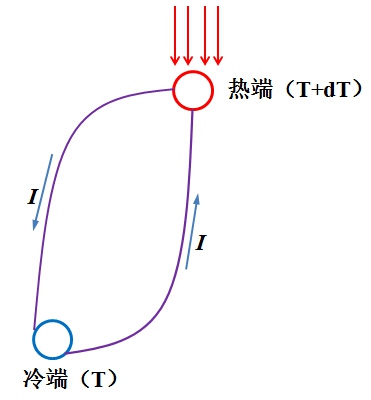 2. 測(cè)溫原理:使用熱電偶時(shí),通常利用其中一個(gè)結(jié)點(diǎn)作為測(cè)量端(熱端),用于吸收熱輻射而產(chǎn)生“溫升”,而另一結(jié)點(diǎn)作為參考端(冷端),并維持恒溫。下圖為簡(jiǎn)單測(cè)試原理結(jié)構(gòu)圖。通過(guò)檢測(cè)電流的大小就可以探測(cè)熱輻射的大小,繼而完成測(cè)溫。