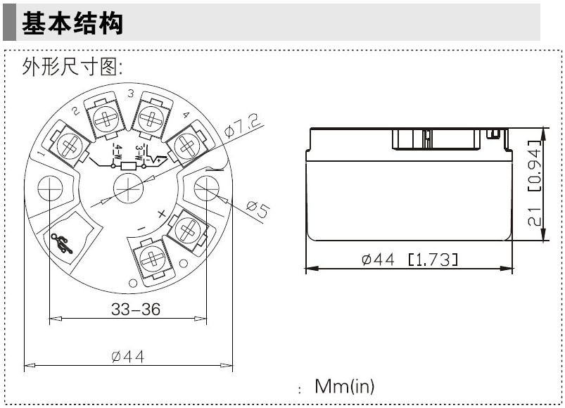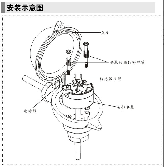 頭部安裝式智能溫度變送器,用于熱電阻(RTD)、熱電偶(TC)、電阻(Ω)、電壓(mV)信號輸入,二線制4~20mA模擬輸出,安裝于傳感器內(nèi)部(Form B)。